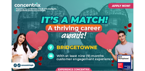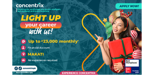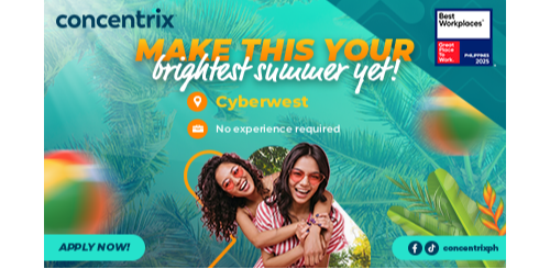 Like and follow us on Facebook and TikTok @ConcentrixPH or visit www.concentrix.com to learn more about us.