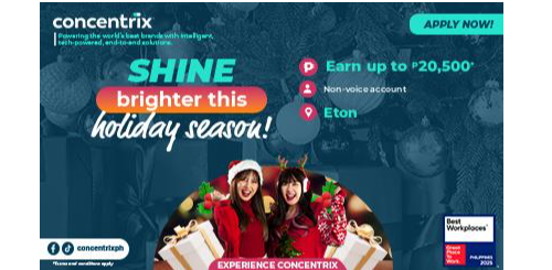 Like and follow us on Facebook and TikTok @ConcentrixPH or visit www.concentrix.com to learn more about us.
