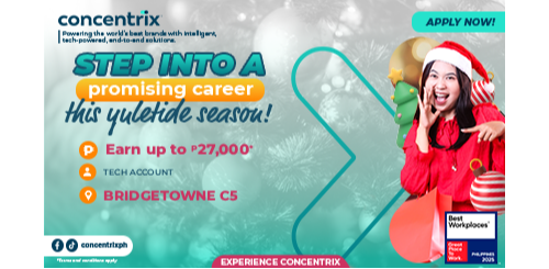 Like and follow us on Facebook and TikTok @ConcentrixPH or visit www.concentrix.com to learn more about us.